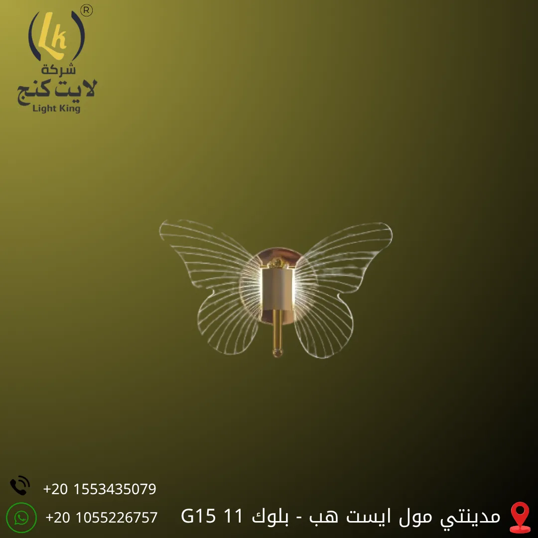 أبليك فراشة ذهبي مقدم من شركة لايت كنج، ضمن مجموعة مختارة بعناية تناسب الأذواق الراقية والبيوت المحبة للتفاصيل الجميلة