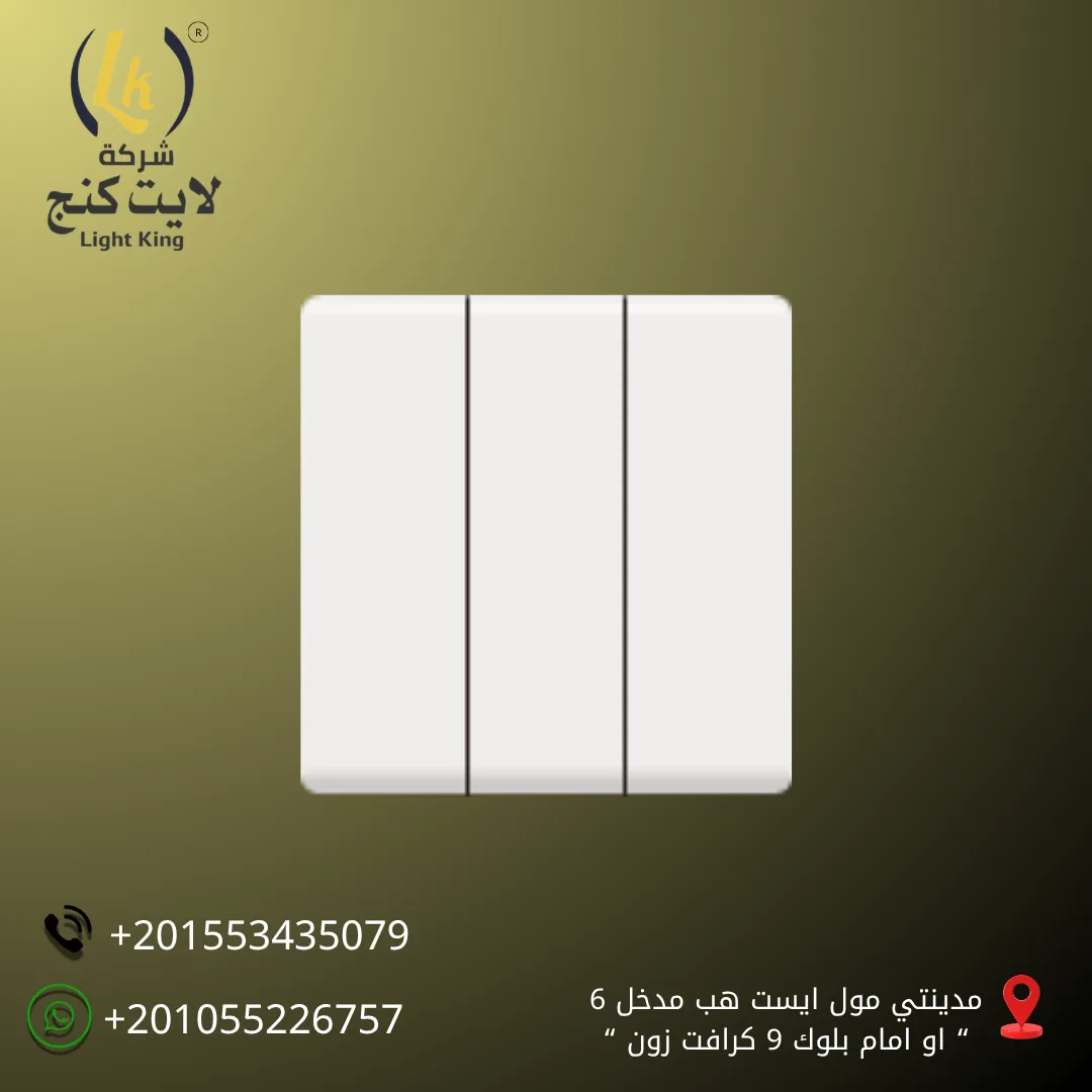 المفتاح مزود بـ3 مفاتيح 2 Way، يعني تقدر تتحكم في 3 دوائر إضاءة مختلفة من أماكن متعددة – مثالي للريسيبشن، الطرقات، والغرف الواسعة.